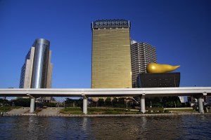 Ama geçmişin “kenar mahallesi” damgası hala yaşıyor sanki. Mesela Sumida nehrinin karşı yakasındaki Asahi Birası genel merkez binası Tokyo’daki çağdaş mimari örneklerinden biri. Çatısındaki dev obje halk arasında “Asakusa no ben” (Asakusa dışkısı) olarak anılıyor. Binaya da kabaca “unko biru” (dışkı binası) diyorlar. Resmi adı bu değil tabii ki ama halk arasında öyle yerleşmiş. Semtin ve Sumida nehrinin kültürel kökenlerine gönderme yapıyor herhalde.