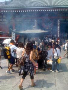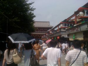 Zevk, eğlence, ve sefanın solunan havaya karıştığı bu bölgede heybetli “Kaminari-mon” (Yıldırım Kapısı) hemen farkedilir. Bu kapı Edo stili işporta dükkanlarının, fransız tipi kafelerin ve benzeri diğer ticari işletmelerin bugün de eski haline yakın muhafaza edildiği bir sokağa açılır. Bir ucunda dev bir tapınağın tüm haşmeti ve kalabalığı ile kendini gösterdiği, ayaküstü yemek ve içki içilen mekanları ve yılların değiştiremediği vitrinleri ile zamanın durduğu yerdir.