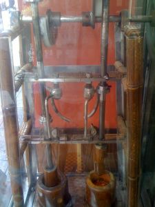 Pul biber satan bir baharatçıdan alış veriş yaptık. Tam Dört yüz senedir hizmet veriyormuş. Fotoğraftaki mekanik havan yüz yirmi ile yüz elli yıl önce icat edilmiş bu işletmenin o zamanki sahibi tarafından. Makine mühendisi kuruyemişçi yani. Demir aksamın çerçevesi bambu ağacından yapılma dikkatinizi çekerim.