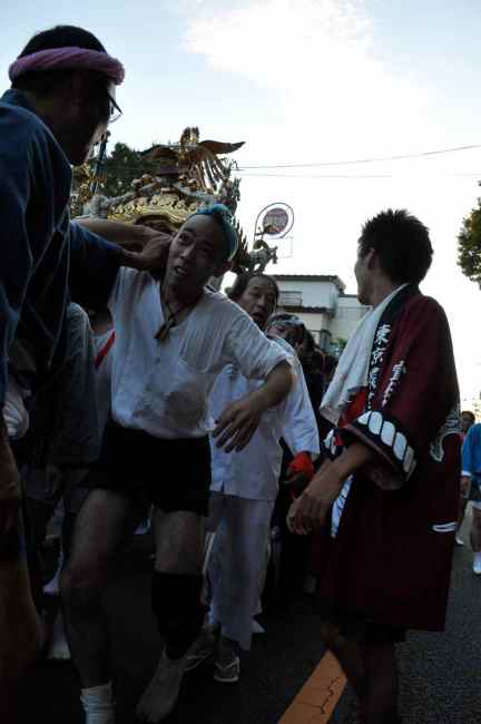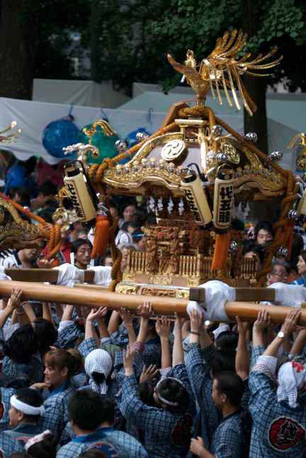 Bu seviyeye “Omikoshi” denilen bir çeşit tahteravanın taşındığı fener alayı ile aşama aşama geliniyor. Onlarca katılımcı tarafından omuzlanan bu süslü tahteravanlar mahallenin ana güzergahını- ki genelde çarşı içinden başlar- kat ederek tapınağa kadar sloganlar atılarak, ilahiler söylenerek ve tekbir getirilerek taşınıyor. Tapınaktaki son aşamanın seviyesi yöreye ve geleneğe bağlı değişiyor ama bu noktada katılanlar ve seyirciler kendilerinden geçiyorlar, festivalin de doruk noktasına ulaşılıyor diyebiliriz.