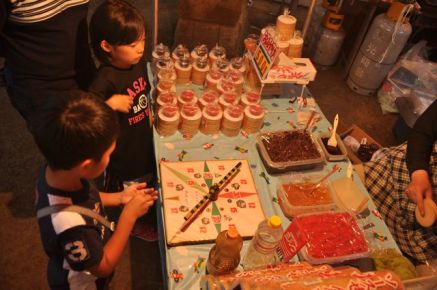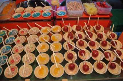 Bir diğer sürpriz aslında iki sürprizden oluşma. Çocukluğumda sokak satıcılarının dolaştırdığı macunlar, ve şeker helvalar. Burada da varlar. Macunlar rengarenk tezgaha serilmişler. Şeker helvalar ise bizim oğlanın boyu kadar varlar.