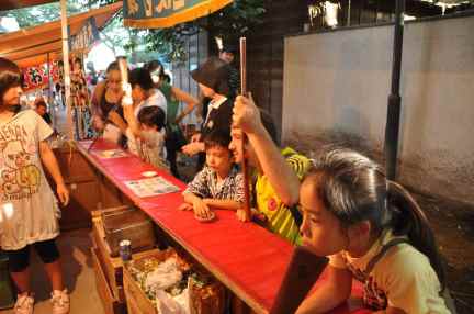 Kalabalığı ve albenili tezgahları gören oğlum Kaan kolumu çekiştirmeye başlıyor. Bir kaç defa gittiğimiz için artık öğrendi. Mantar tabancalarını, havalı tüfekleri, şans talih kader kısmet oynamayı istiyor. Tezgah aralarındaki dar yollardan geleneksel Japon giysileri ile beyler ve bayanlar yürüyor, çocuklar küçük sevinç ve heyecan çığlıkları atarak koşuşturuyorlar.