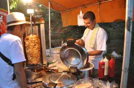 Bu kalabalıkta hoş bir kaç sürpriz de bekliyor beni. Birincisi bir Türk dönercisi. Bir köşeye tezgah açmış “Robin Kebap” satıyor. Bizim sokak da görmüştüm daha önce. Bir dükkanı vardı onu kapatmış şimdi festivallere çalışıyormuş. Hemen ailecek bol acılı tavuk döner yiyoruz.