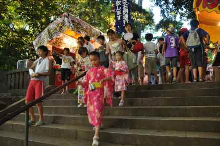 Panayırın en güzel yanı her zaman olduğu gibi gene çocuklar. Rengarenk kimonolar, yukatalar içinde yeni açmış bahar çiçekleri gibiler. Yüzlerinde saf, taze, tertemiz ve yapmacık olmayan bir sevinç ve heyecan var. Modern yaşamdan, gece saat 10lara kadar devam edilen dersanelerden, Nintendo veya Sony oyunlarından farklı, gerçek dışı, bir fantazi dünyası burası onlar için. Zamanın durduğu, oyunların ve geleneklerin yüzlerce yıldır aynı kaldığı, günü birlik yaşanan bir masal ve düşler alemi.