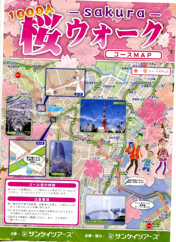 Sankei gazetesi bir organizasyon yapmış, 1000 kişi bir araya gelip 6 Nisan günü Tokyo’nun Meji bahçelerinden Odaiba kompleksine kadar olan 11 kilometrelik parukuru sakura çiçeklerinin tadına vararak yürüyecekti.