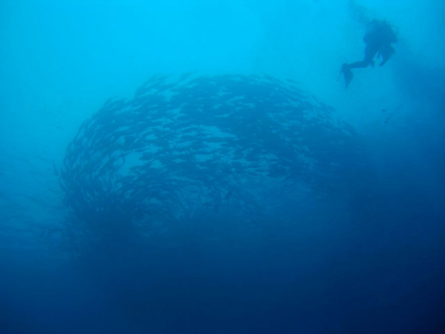 Yarım saatlik yolculuktan sonra rehberimiz ilk dalış noktasına geldiğimizi söyledi. Deniz dalgalıydı, hava da gittikçe bulutlanıyordu. Ekipmanları kuşanıp kendimizi suya bıraktık. Bu kez görüş uzaklığı kötüydü- seyir defterimize 5 metre diye not düşmüşüz. Yani hiçbir şey görmek mümkün değildi. Güçlü akıntıyı ve dalgaları hissedebiliyorduk.