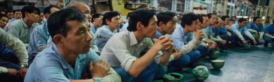 Bir fabrikada çökmüş anlatılanları dinleyen Asyalı işçiler